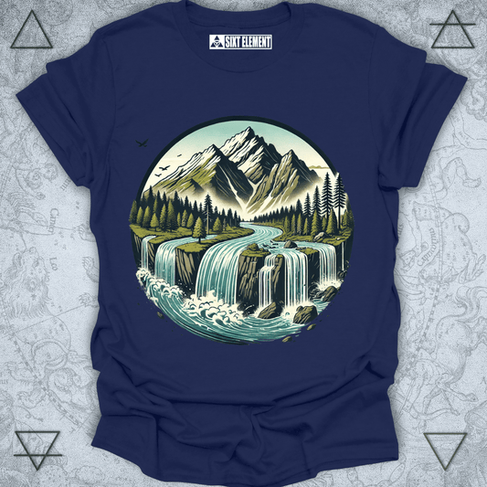 Mountain River Flow – Nature Cascade Premium Graphic T-Shirt