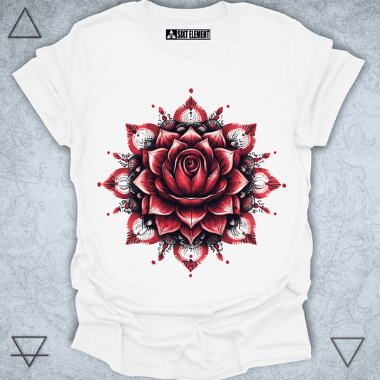 Mandala Rose Bloom Premium Quality T-Shirt – Sacred Floral Fusion of Love & Harmony