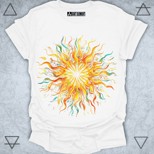 Radiant Sunburst Premium Quality T-Shirt – Abstract Sunshine & Joyful Energy Design