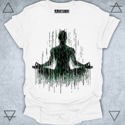 Binary Meditation Premium Quality T-Shirt – Digital Mindfulness Design