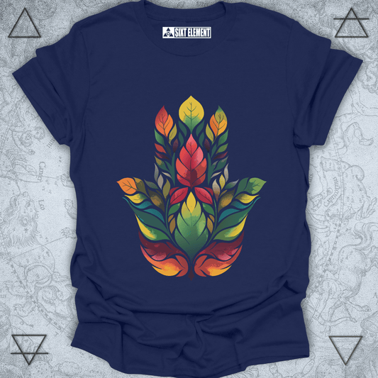 Autumn Hamsa Leaf Mandala Premium Quality T-Shirt – Boho Spirit of Protection